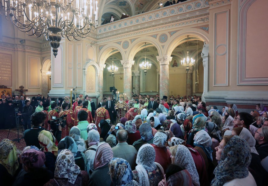 Радость в день юбилея древней обители вызвал приезд в монастырь Предстоятеля нашей Церкви и совершение им праздничной Божественной литургии в соборе Усекновения главы Иоанна Предтечи. Радость для каждого храма – много причастников, а здесь их было море! Награждение монашествующих и помощников обители высокими Церковными наградами – тоже какая радость! Порадовало молящихся и замечательное пение сестер и певчих-мирянок. К слову, на просторных хорах, расположенных почти что под самым куполом, как раз над головами певчих есть две современные фрески. Одна – с изображением величайшего радостного события: Крещения Спасителя в реке Иордан Его Предтечей. Вторая изображает событие скорбное: Усекновение главы Проповедника покаяния, который не боялся обличать нечестивых людей, фарисеев, начальствующих и даже самого царя. Для певчих эти фрески – постоянное напоминание, в каком они месте находятся и насколько благоговейно должны исполнять свое послушание.