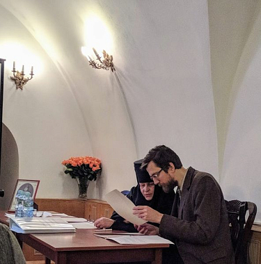 Кандидат исторических наук Дмитрий Давиденко в своем докладе «Подготовка новой редакции жития старицы Досифеи по архивным источникам» подробно рассказал о находках, большая часть которых пришлась на вторую половину 2019 года. Членам Досифеевской рабочей группы пришлось немало часов провести в Центральном Государственном архиве Москвы и в отделе рукописей Российской Государственной библиотеки. Сестры обители, монахиня Тавифа (Исаева) – руководитель группы – и инокиня Софрония (Адвахова), съездили в командировку Саранск, где в Центральном государственном архиве Республики Мордовия нашли очень интересные материалы. Также кропотливая поисковая работа велась в архивных фондах Новоспасского монастыря и Оптиной пустыни. В целом было выявлено 10 документов (как прижизненных, так и посмертных), в которых упоминается старица. О чьей кончине, добавил Дмитрий Григорьевич, на следующий день, 5 февраля 1810 года, узнала вся православная Москва – настолько велико было ее почитание! (Почему подвижница хотела быть упокоенной в Московском Новоспасском монастыре, было подробно изложено во втором докладе Д.Г. Давиденко: «Почитание старицы Досифеи в XІX – начале XX в. и церковно-археологические памятники Московского Новоспасского монастыря». (Кстати, именно он, историк-архивариус, нашел документальное подтверждение, что монахиня Досифея – это не какая-нибудь выдуманная легендарная личность, а реальный человек, живший в XIX веке. И нашел он это подтверждение в книге записей Новоспасского монастыря о погребении монахини Досифеи). Если говорить о результате работы участников вышеназванной группы, то, во-первых, была составлена историческая справка – своего рода документальное повествование о старице Досифее. Во-вторых, появилась новая литературная редакция ее жития.