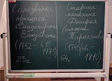 Как на небольшой учебной доске мать Феонилла схематично разделила мелом имена и годы жизни двух личностей – самозванки и старицы, так и в своем докладе она провела четкую границу между ними, по опыту послушания экскурсовода зная, что в умах несведущих людей царит историческая путаница. Первой, именовавшей себя принцессой Владимирской, у которой были и другие имена (в том числе и княжна Тараканова, якобы дочь императрицы Елизаветы Петровны и графа Разумовского, а значит – претендентка на Российский престол!), посвящена масса художественных произведений. Про другую – тайну рождения принцессы Августы Таракановой, ее насильственное заточение в Ивановской обители по распоряжению Екатерины II и преображение души через избранный невольницей путь полного доверия к Богу – написаны жизнеописания или жития. Именно этим житиям докладчица уделила основное внимание. Она рассказала о разных трудах того времени, касающихся старицы Досифеи. Но совершенно замечательный труд, где впервые появились ссылки на источники, составил известный историограф протоиерей Василий Руднев. Настоятель храма Святой Троицы на Шаболовке, позже назначенный настоятелем Данилова монастыря и постриженный в монашество с именем Тихон. Отец Василий буквально вернул сестрам восстанавливавшейся в XIX веке обители ее историю. А уже в конце XX века священник Афанасий Гумеров – ныне архимандрит Иов, насельник Сретенского монастыря в столице – по благословению священноначалия составил житие старицы – и тоже богатое ссылками на источники. Вообще батюшка, наш современник, на стыке столетий по поручению Патриарха и Комиссии по канонизации святых подготовил целый ряд материалов к канонизации многих святых. И вот уже прославлены блаженная Матрона Московская, святитель Макарий (Невский), преподобный Аристоклий, старец Афонский и Московский. Подготовлен материал к канонизации Великого князя Сергия Александровича, который упокоен вместе с монахиней Досифеей в храме-усыпальнице преподобного Романа Сладкопевца в Новоспасском монастыре в Москве.